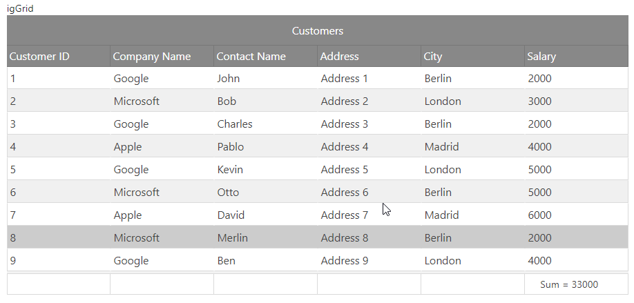 features.Summaries().ShowSummariesButton(false).ShowDropDownButton(false).ColumnSettings(settings => { settings.ColumnSetting().ColumnKey("Salary").SummaryOperands(so => { so.SummaryOperand().Type(SummaryFunction.Sum).Active(true); }); })The described scenario could be observed here: